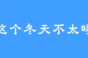 这个冬天不太暖
